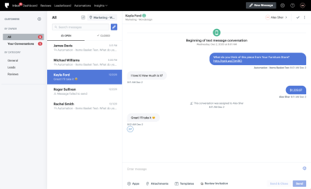 Wondersign's SMS integrations* offer you a two-way text message integration starting from kiosks and tablets. When shoppers share products and shopping carts via text, responses such as "How much?" feed directly into your integration inbox.
